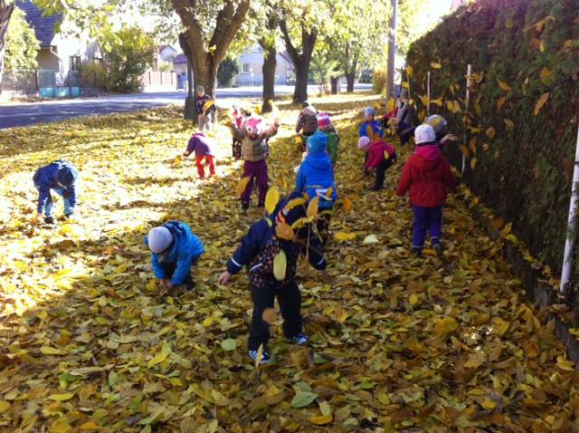 Sbírání ořechů, hra s listy při procházce