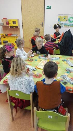 Karneval v maskách - šašek a novinový tanec
