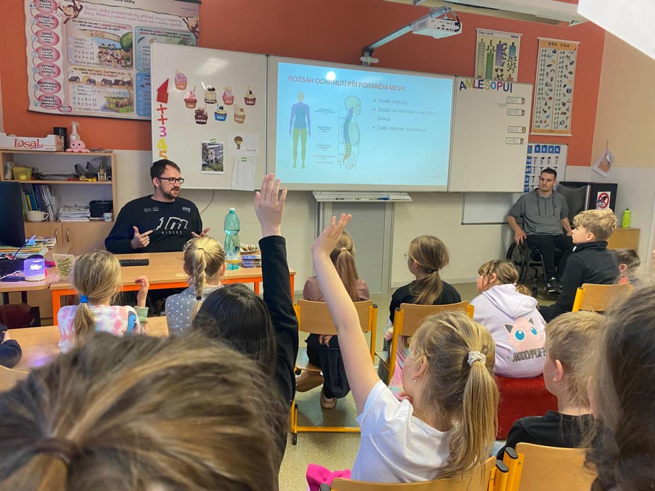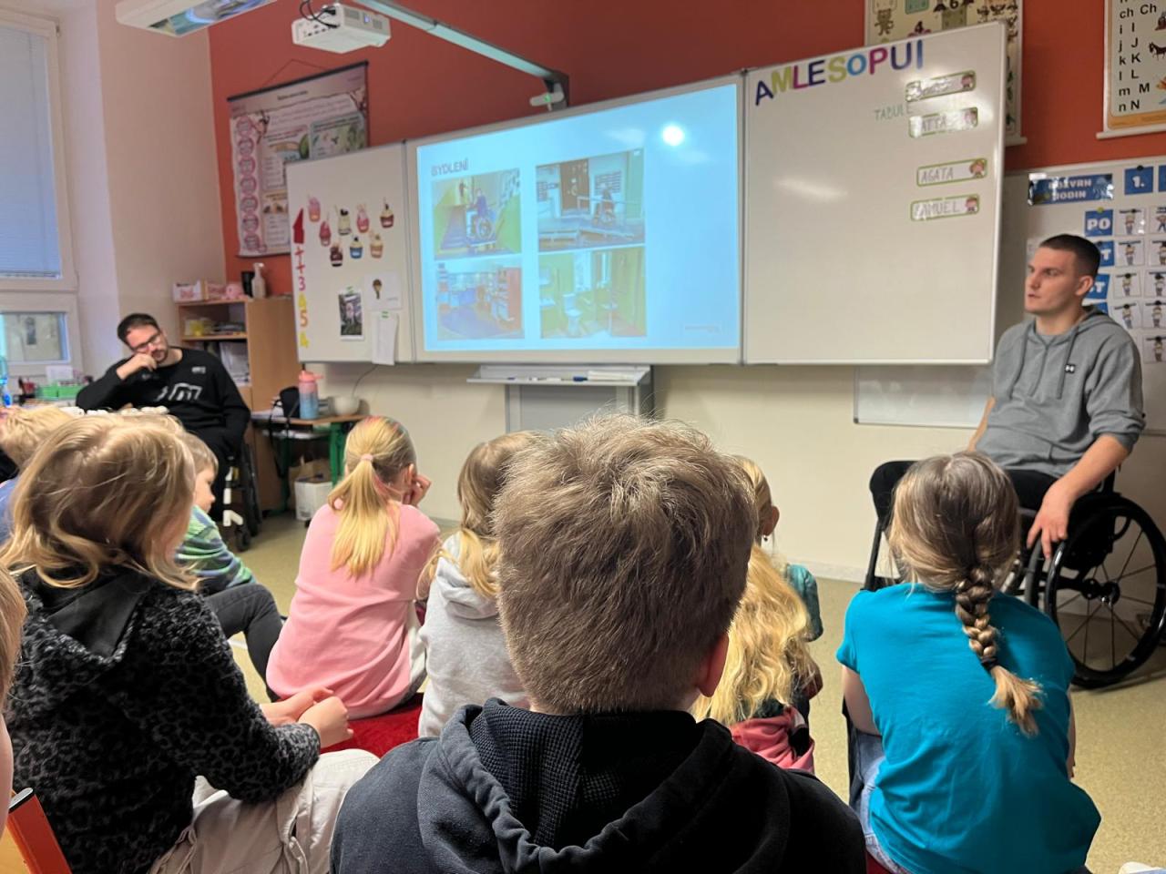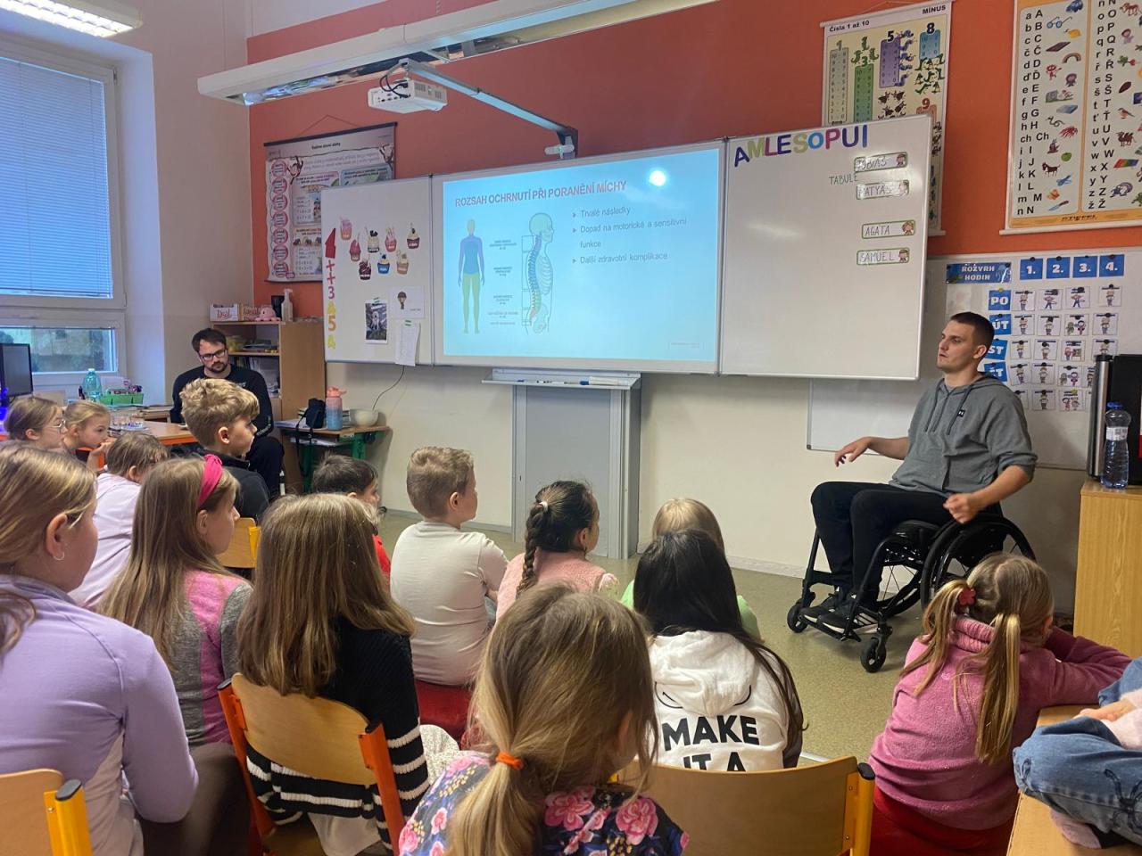 Dva mladí ambasadoři s dětmi sdíleli své vlastní příběhy – po vážném úrazu zůstali na vozíku – a poutavou formou vysvětlili, k čemu slouží mícha a co se může stát při jejím poranění. Společně si také připomněli bezpečné chování při běžných činnostech, například při hrách, sportu nebo při oblíbeném houpání na židlích.