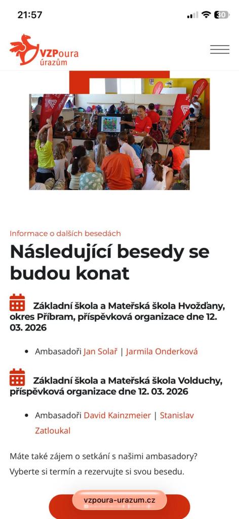 Žáci tříd 3.AB, 4.A a 4.B se 12. 3. 2026 zúčastnili preventivního programu Všeobecné zdravotní pojišťovny VZPoura úrazům.